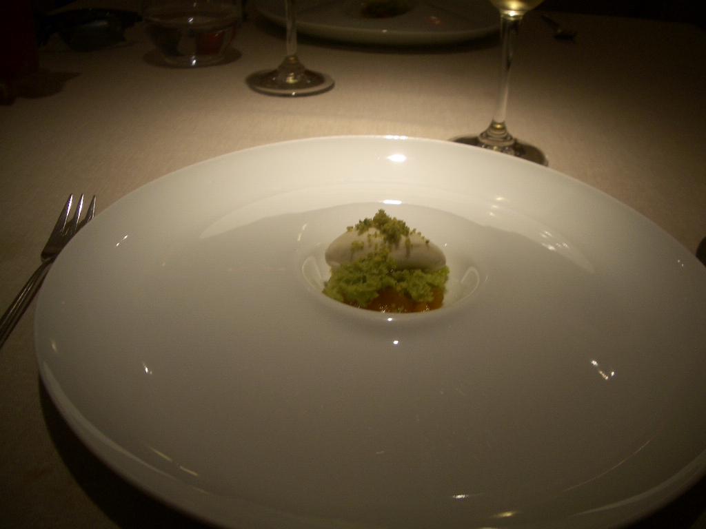 Some of the usual courses were excellent (the foie gras) but a few too many had slipped to just ordinary so that the whole meal felt a bit hit and miss. The individual courses had shrunk so that a dimple in the plate seemed to hold them. The cheese course in particular looked really tiny, (one small piece of cheese, a minuscule tomato and a couple of leaves of rocket), but I have to say it came as a bit of a surprise as it was very tasty indeed.